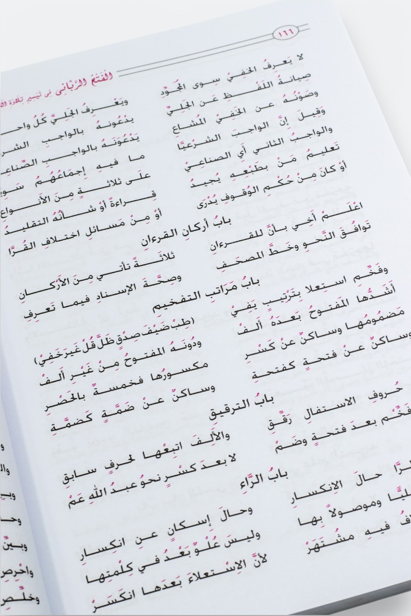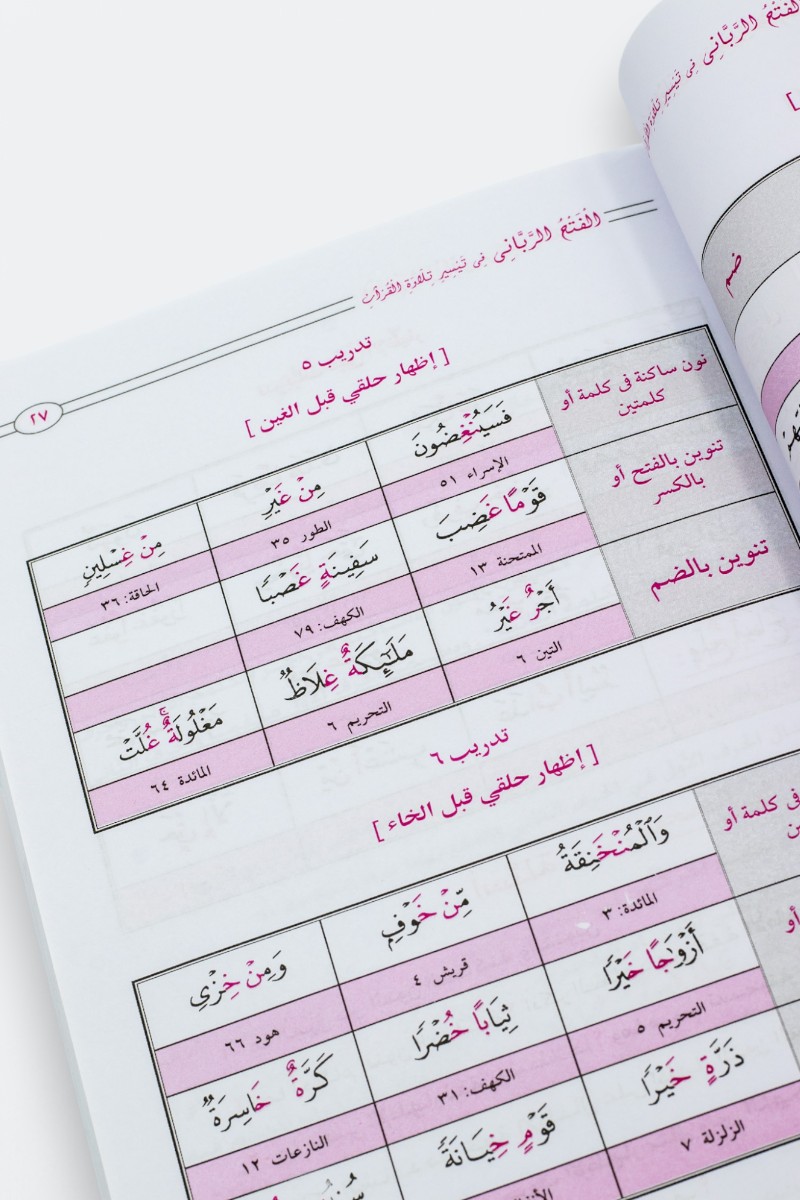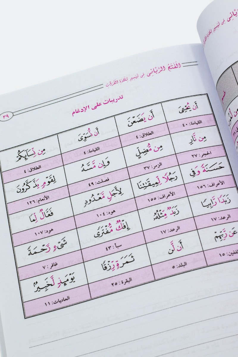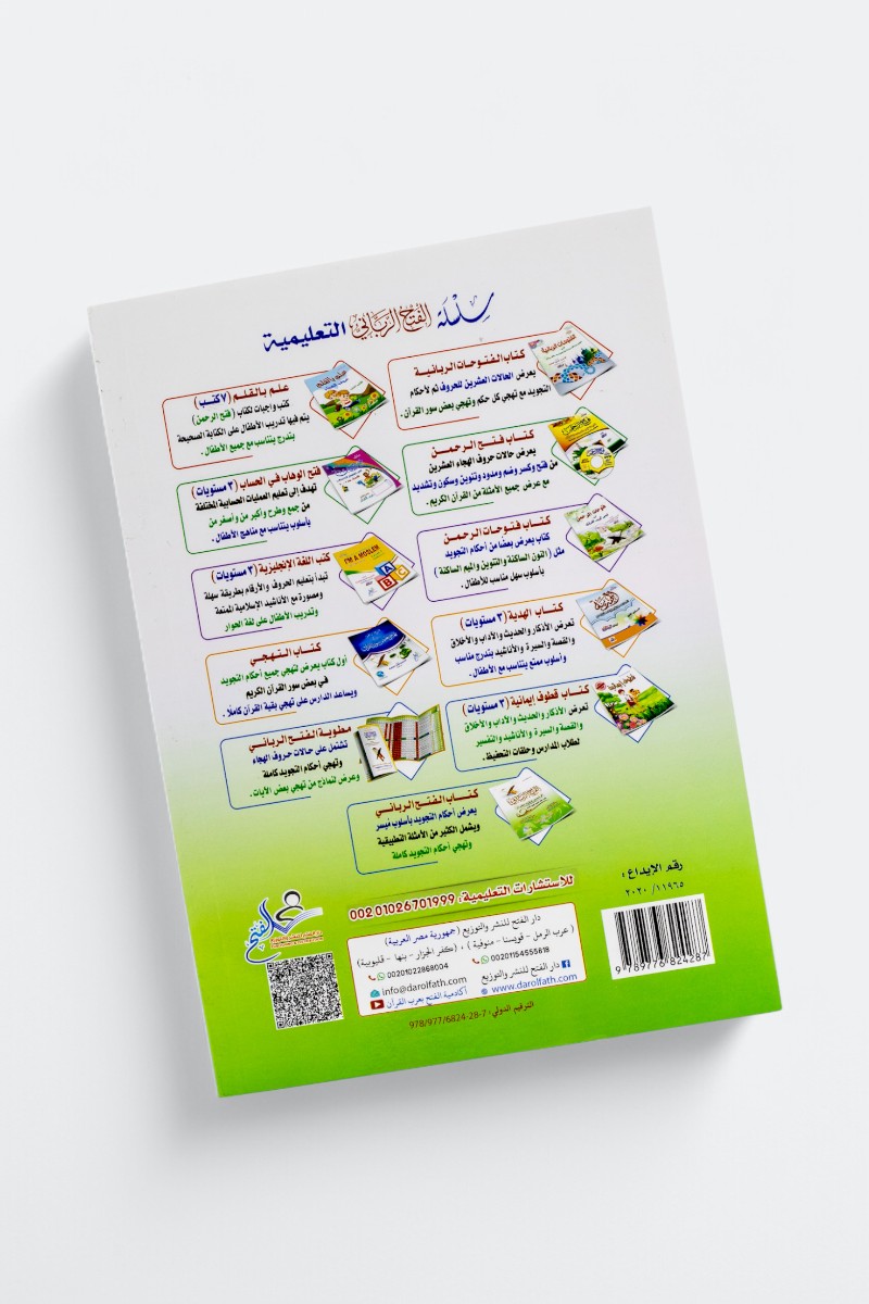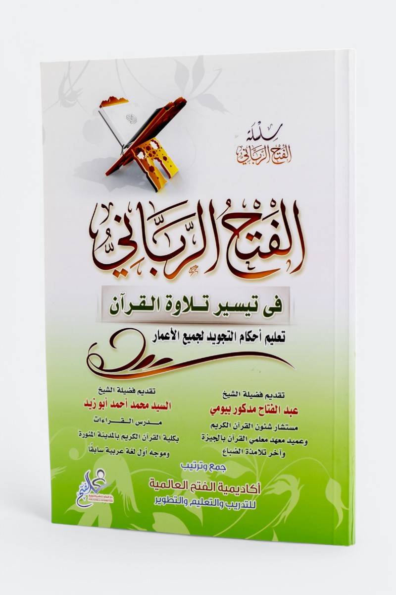 الفتح الرباني في تيسير تلاوة القرآن، هو كتاب تعليمي شامل يقدم أسهل وأسرع الطرق لتعليم قراءة القرآن الكريم وتلاوته بشكل صحيح. يركز الكتاب على تبسيط حالات حروف الهجاء وأحكام التجويد من خلال منهجية ميسرة تناسب جميع الأعمار والمستويات، بدءًا من المبتدئين وحتى المتقدمين. يتضمن الكتاب شرحًا عمليًا مدعومًا بأمثلة قرآنية، مما يجعله أداة فعّالة للمعلمين والطلاب في دور تحفيظ القرآن. يتميز بأسلوبه الواضح والمنهجي، مما يساعد القراء على إتقان التلاوة وفق قواعد التجويد بسهولة وسرعة. «الفتح الرباني» هو خيار مثالي لمن يسعون إلى تحسين تلاوتهم وبناء أساس قوي في قراءة القرآن الكريم.
