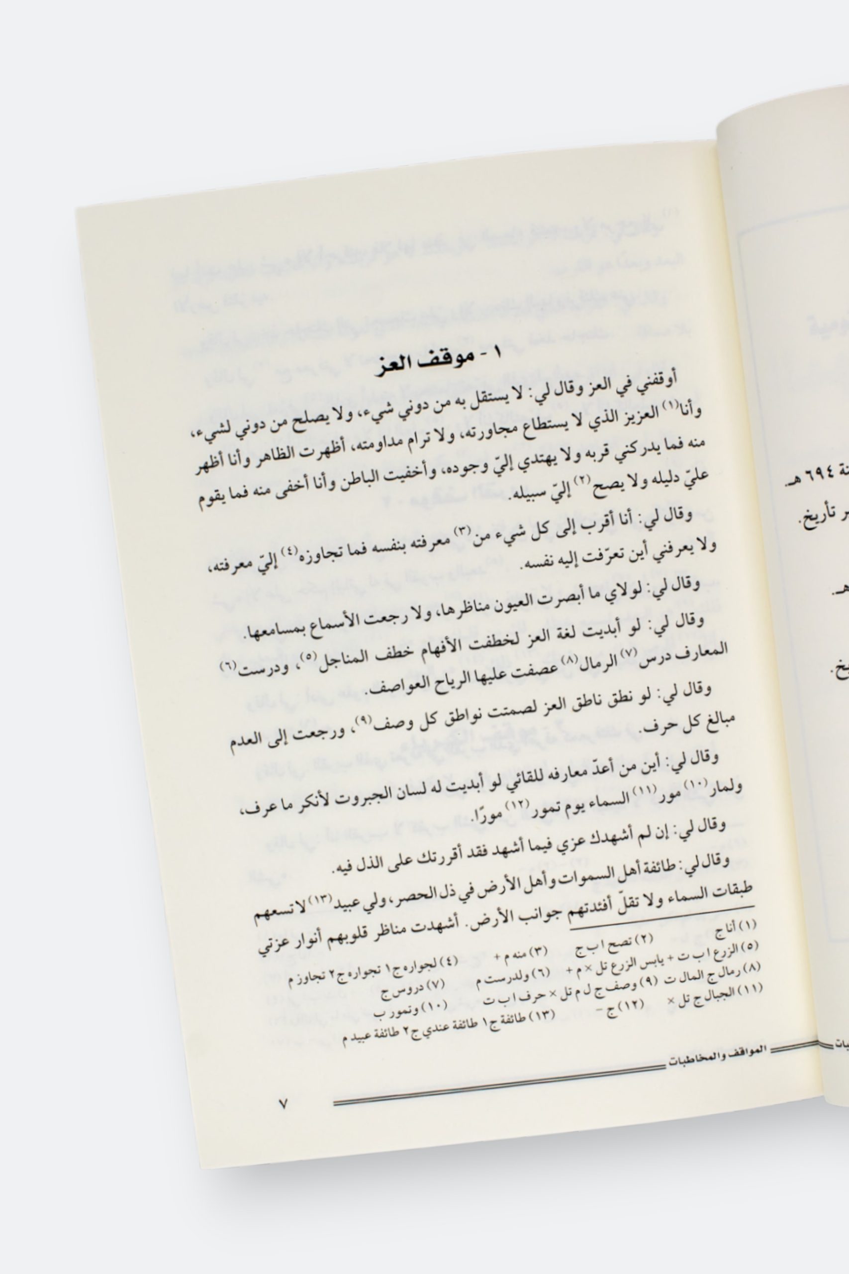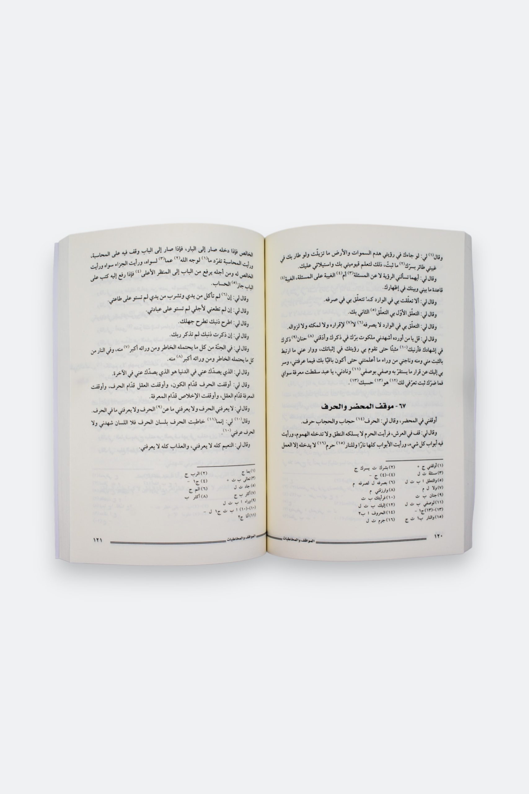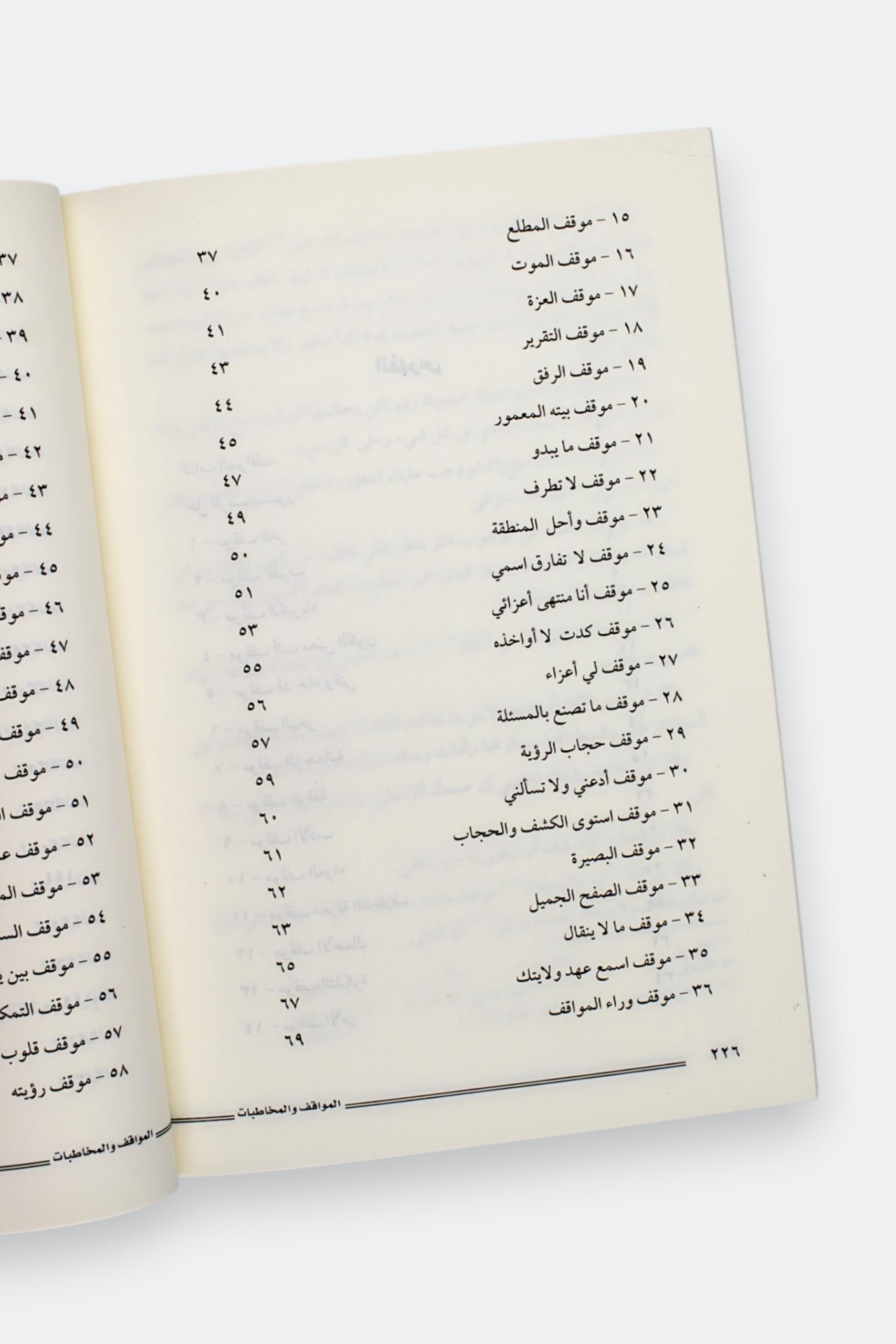 كتاب في التصوف والادب مع الله عز وجل، وهو كتاب عظيم في نفعه غريب في اسلوبه حيث يذكر الكاتب موقف الشرع والدين من كل امر وقف عليه ثم يذكر لسان حاله وكأن الشاعر يخاطبه فيقول : ” وقفني في كذا وقال كذا ” وكذلك في المخاطبات، فجاء الكتاب رائع الاسلوب، سهل التحصيل، عظيم النفع.