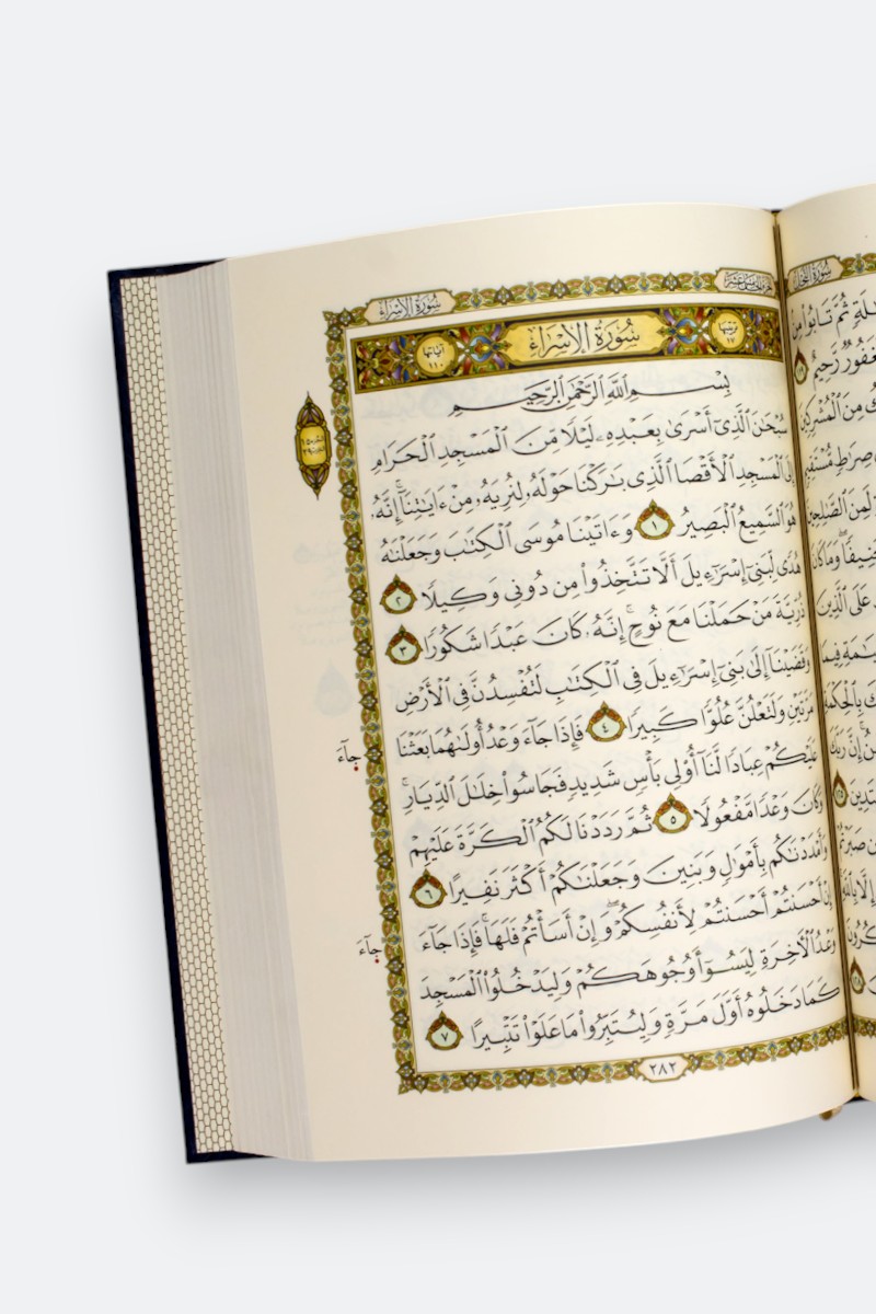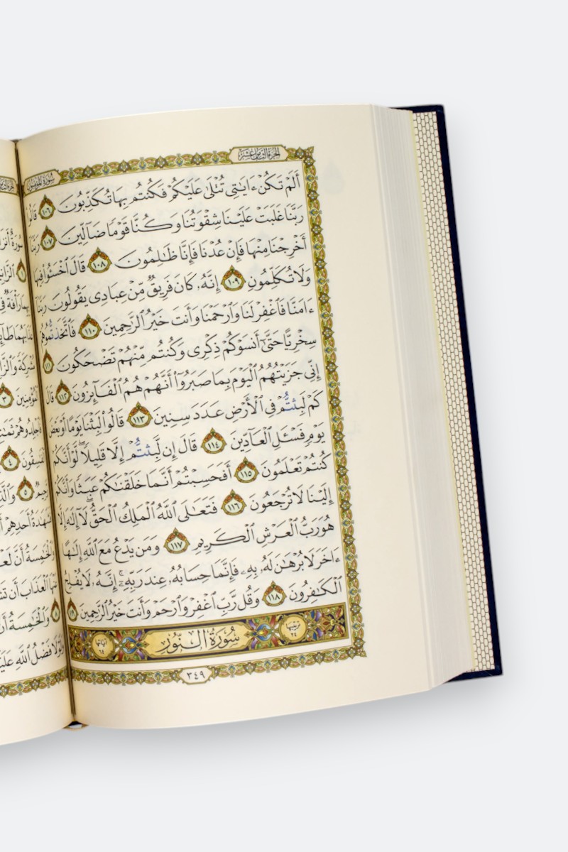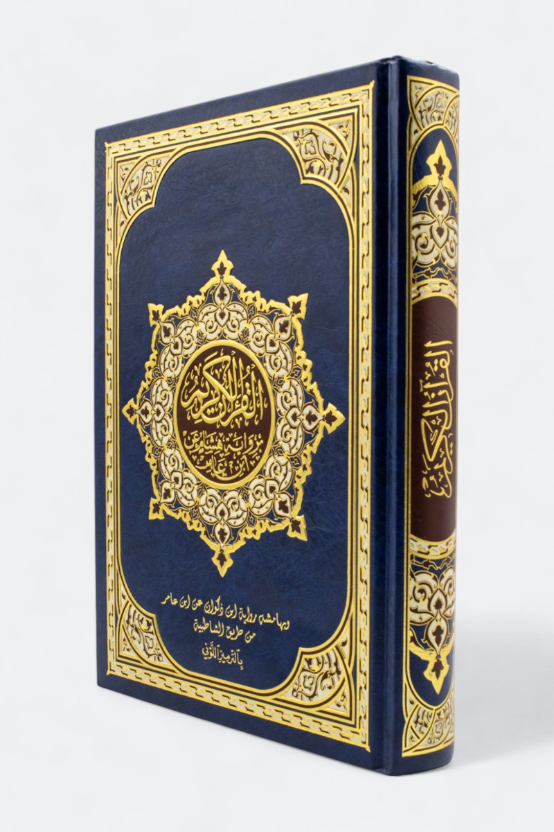 «القرآن الكريم وبهامشه رواية ابن ذكوان عن ابن عامر من طريق الشاطبية بالترميز اللوني» هو مصحف مميز صادر عن دار الخير، يجمع بين دقة الرواية وجمال التصميم. يتميز هذا المصحف باستخدام الترميز اللوني لتوضيح أحكام التجويد، مما يسهّل على القارئ تعلم التلاوة الصحيحة وفق رواية ابن ذكوان عن الإمام ابن عامر. مكتوب بالرسم العثماني المعتمد، مع طباعة فاخرة. يعد إضافة قيمة لكل مكتبة إسلامية. مصحف عملي وجميل يساعد على القراءة بتدبر وتعلم صحيح لأحكام التلاوة.