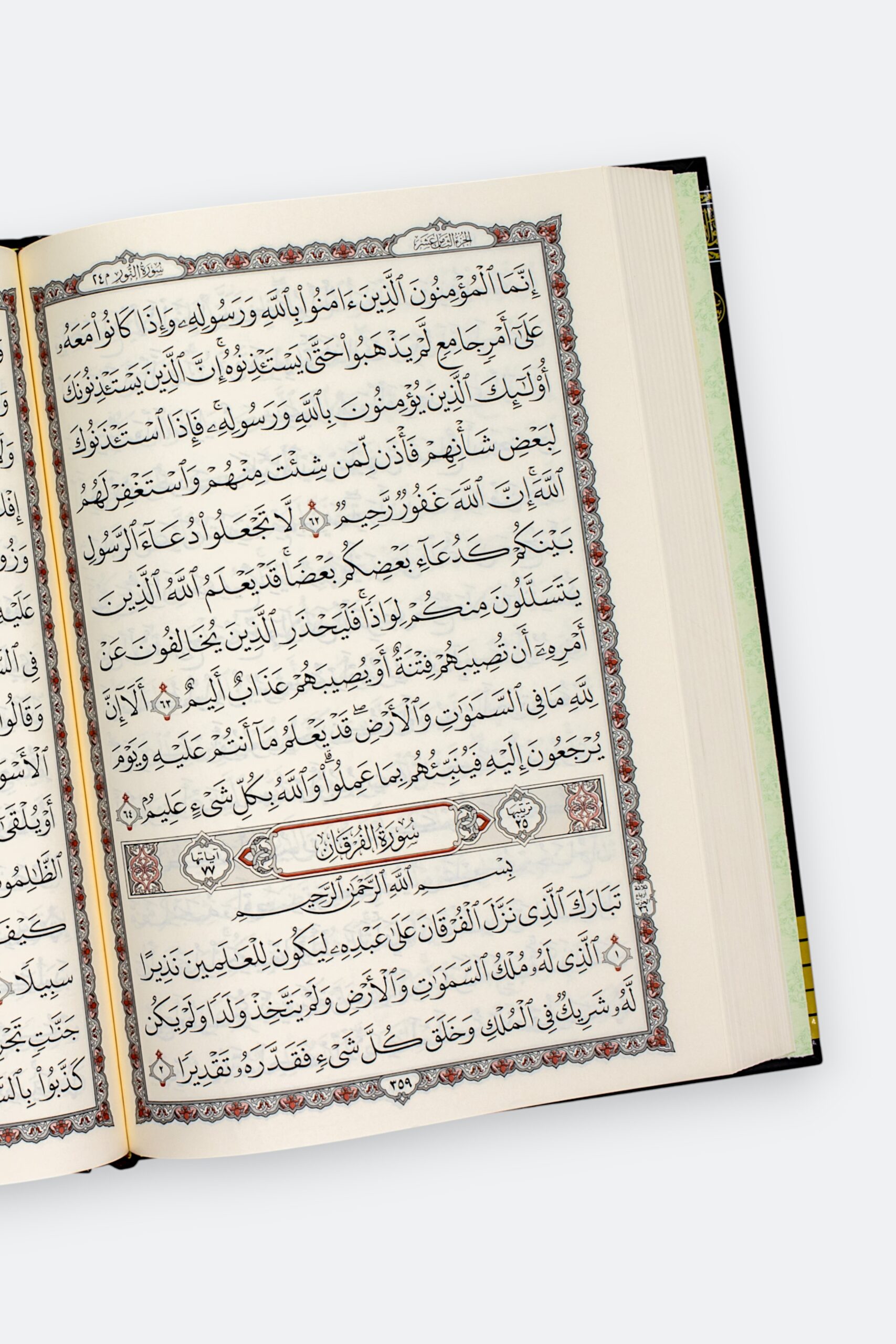 «مصحف ستار الكعبة» هو إصدار فاخر يتميز بتصميم مستوحى من ستار الكعبة المشرفة، مما يجعله اختيارًا أنيقًا ومميزًا لمحبي المصاحف الفاخرة. مطبوع على ورق كريمي عالي الجودة يوفر راحة أثناء القراءة، مع طباعة واضحة تضمن دقة النص القرآني. بحجمه المناسب 14×20 سم، يعد هذا المصحف مثاليًا للاستخدام الشخصي أو كهدية قيمة تعكس روحانية وخصوصية القرآن الكريم.
