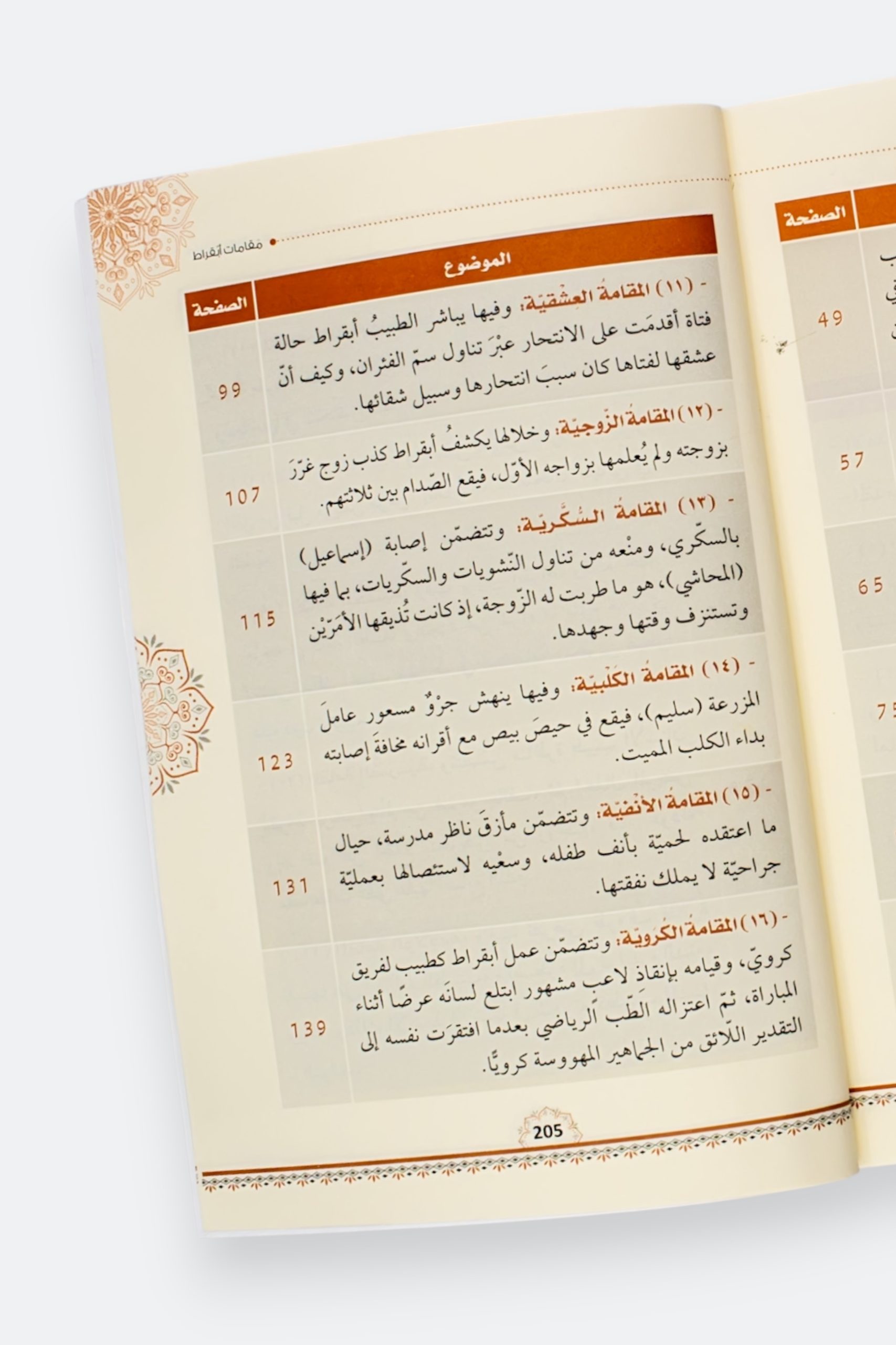 مقامات بهيّة، بماء الذّهب مطليّة، تُضارع ما خطّه الأوّلون من إبداعات، وما تَقدَّم من فاخر المقامات، فالحُسن لها عنوان، وهي والظّرف صنوان، وفيها من دروس الحياة، وأخبار الرّواة، وحكمة العقلاء، وآداب الفضلاء، وبيان السّادة البلغاء. أمّا كاتبها فطبيب حاذق في مهنته، وكاتب في رتبته، جمع بين الحكمة والأناة، واللفظة المُحَلّاة، تأتيه الكلمات طائعة، فإذا بها للبهجة صانعة، ولصنوف الأدب جامعة، طويل النفس في الإبداع، قادرٌ على السبْر والإمتاع، فالقارئ به محظوظ، وحريٌّ بأن تكون للدراسة منه حظوظ، إذ هو مستحقٌّ لكلّ حفاوة واهتمام، ونقدٍ وحفظٍ وإلمام.