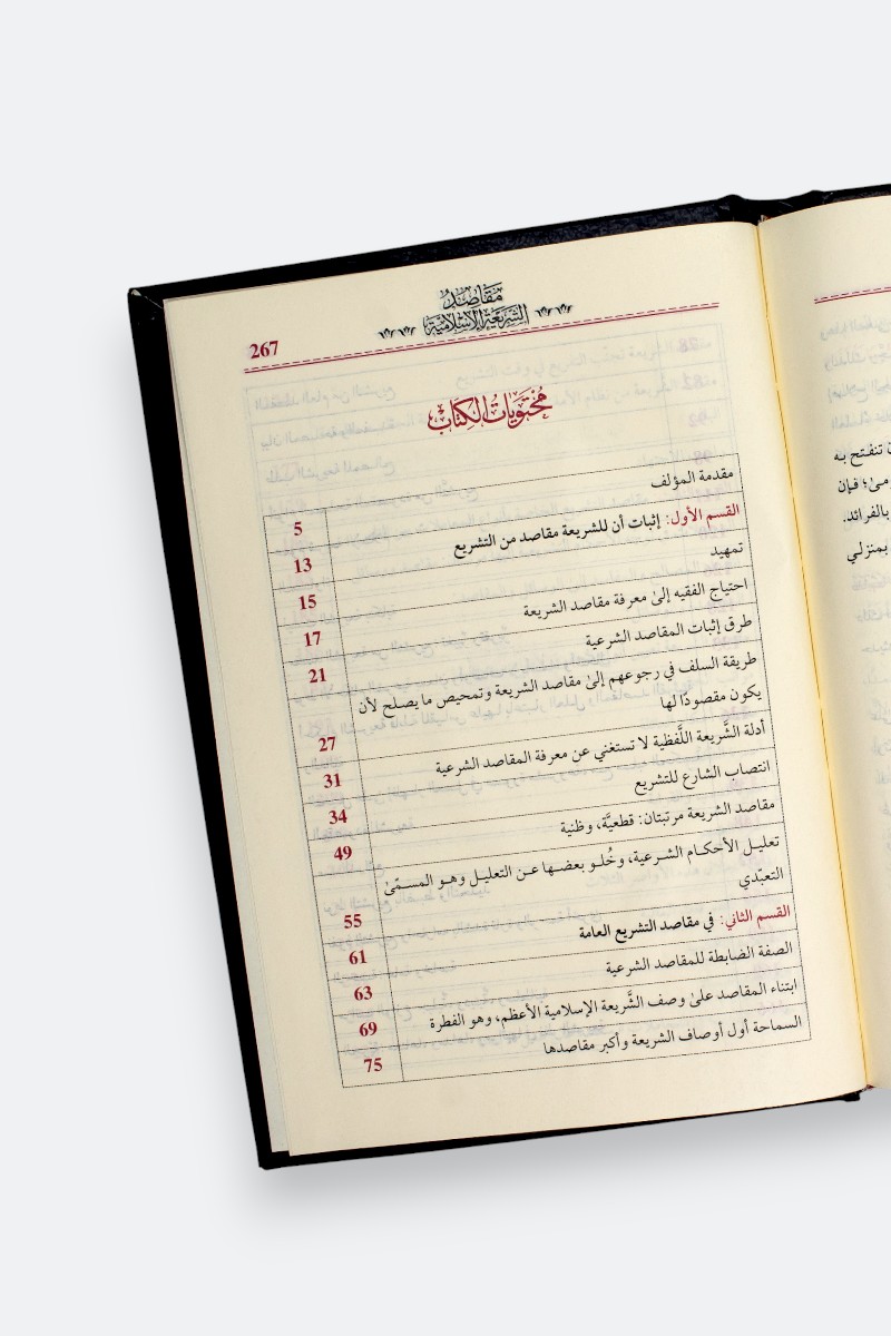 تصنيف المقاصد: ينقسم الكتاب إلى أقسام عديدة توضح المقاصد العامة والخاصة للتشريع، مثل حفظ النفس، الدين، العقل، النسل، والمال، مع تحليل لأبعادها وأهميتها في ضبط النظام الاجتماعي.