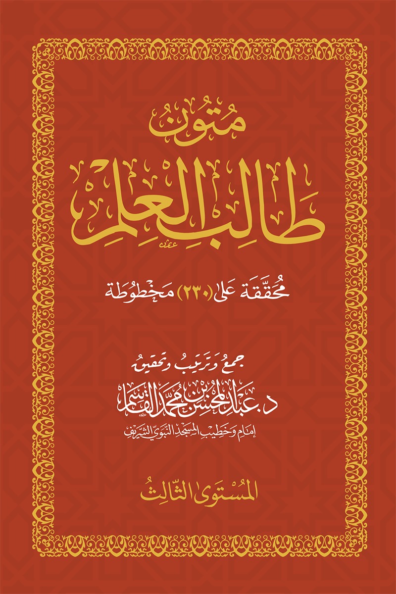 متون طالب العلم – المستوى الثالث جمع وترتيب وتحقيق: د. عبد المحسن بن محمد القاسم، يتضمن هذا الجزء من سلسلة متون طالب العلم أربعة متون علمية مهمة لطالب العلم المتوسط والمتقدم: منظومة البيقوني في مصطلح الحديث، منظومة أبي إسحاق الإلبيري في آداب طلب العلم، المقدمة الآجرومية في النحو، والعقيدة الواسطية لشيخ الإسلام ابن تيمية في العقيدة. يُعد هذا الكتاب مرحلة متقدمة ضمن منهجية متدرجة في طلب العلم، تجمع بين العلوم الشرعية واللغوية، وتؤسس للمتعلم بناء علميًا متينًا في الحديث، والفقه، والعقيدة، والنحو، وآداب التعلّم.