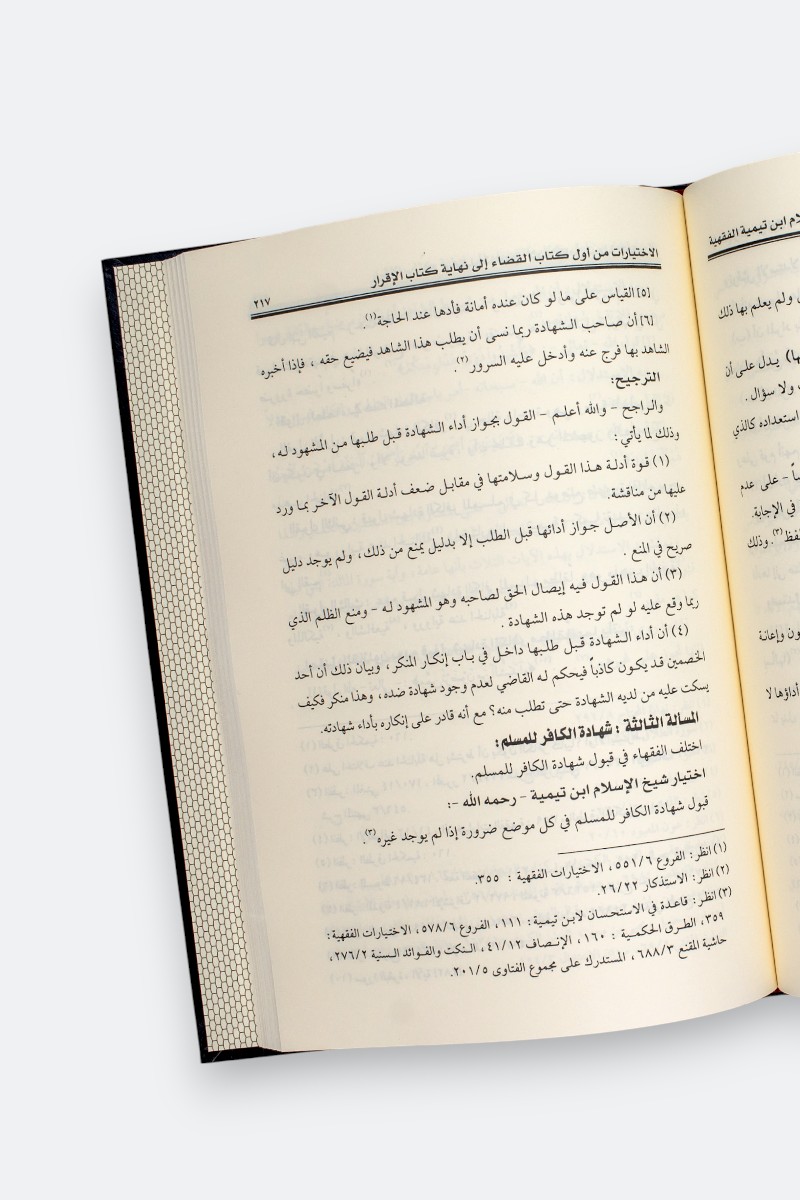 اختيارات شيخ الإسلام ابن تيمية الفقهية في 8 أجزاء، هو عمل علمي موسّع يجمع أبرز المسائل الفقهية التي اختارها ابن تيمية وميّز بها اجتهاده عن غيره من الأئمة. أُعدّ هذا المشروع من ست رسائل دكتوراه، وشارك في تأليفه نخبة من الباحثين المتخصصين. يُبرز الكتاب منهج ابن تيمية الفقهي، وقوة استدلاله، وتعامله مع النصوص الشرعية بعمق ودقة، ويُعد مرجعًا مهمًا لطلاب العلم والباحثين في الفقه المقارن.