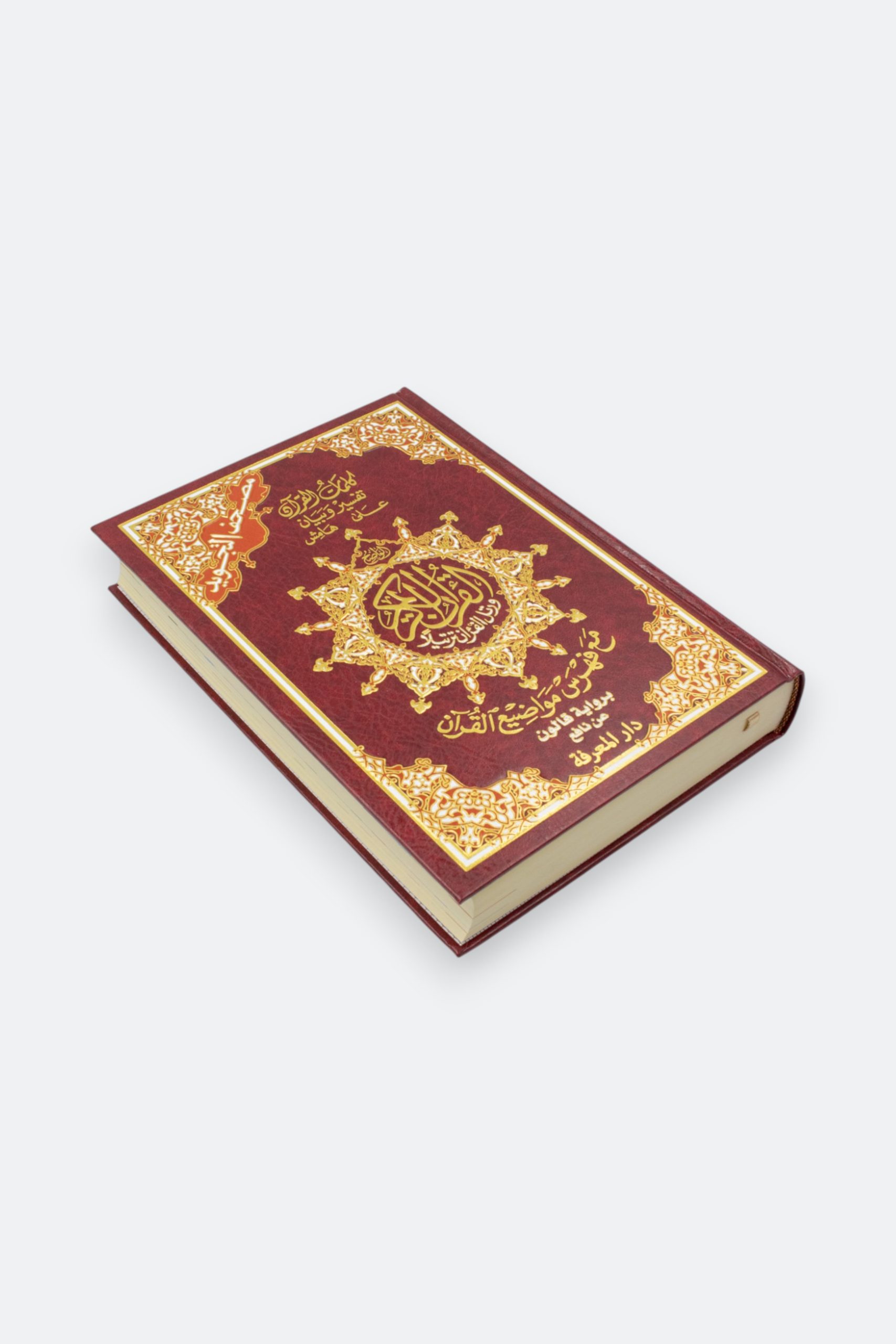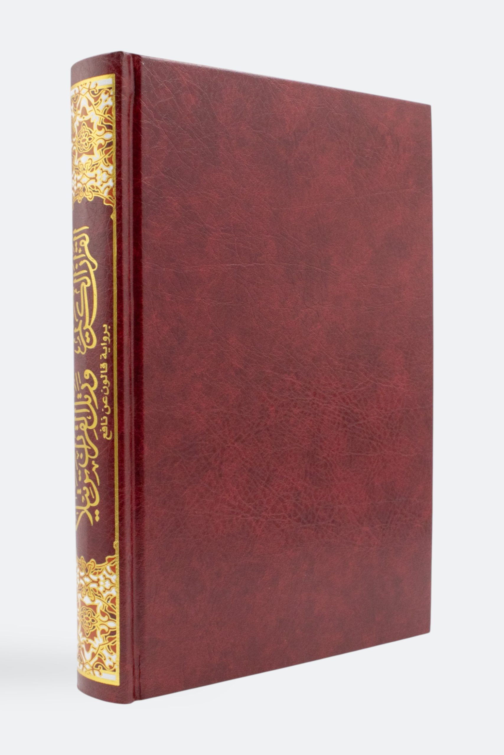 1. رواية قالون عن نافع: يعرض المصحف النص القرآني كاملاً بالرسم العثماني وفق رواية قالون، وهي إحدى الروايات القرآنية المتواترة التي تُقرأ في العديد من الدول الإسلامية.