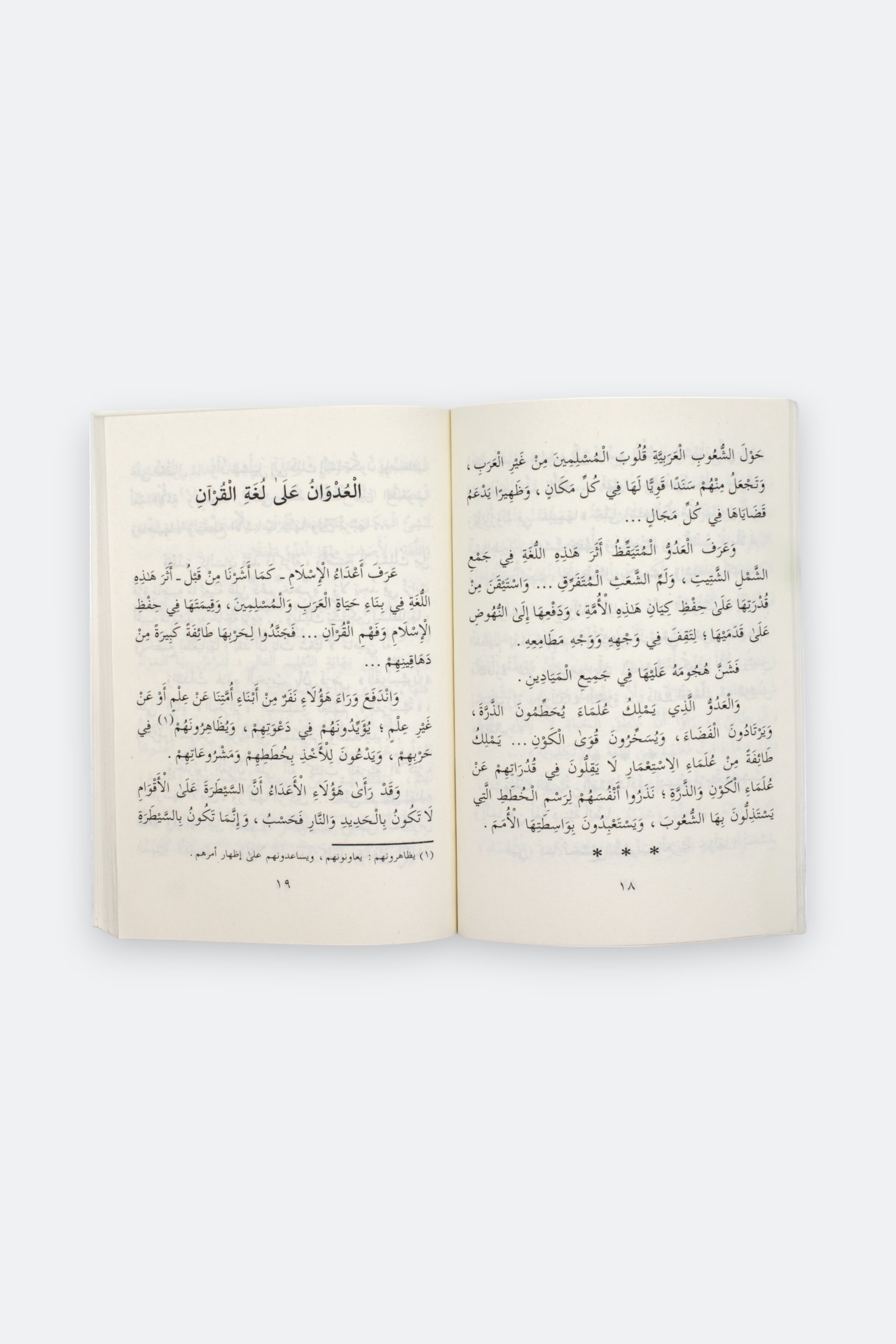 ألقى الأضواء على الحرب التي شنها الأعداء على لغة القرآن: تارة في السر وأخرى في العلن… وناقش الحجج التي أطلقها الخصوم تحت ستار التجديد والإصلاح… وكشف المقاصد التي تكمن وراء هذه الحرب. وبين تفرد هذه اللغة وتميزها عن غيرها من لغات الأرض. وقدرتها على الوفاء بمتطلبات الحياة، والنهوض بأعباء الحضارة. وقد نبه المؤلف – رحمه الله – إلى أن لغتنا العربية ليست ملكا لشعب بعينه… وإنما هي تراث العرب والمسلمين جميعا على اختلاف ديارهم وأقطارهم. كما وضح الدكتور الباشا – رحمه الله – حق أبنائنا علينا في الذود عن لغتهم. وصيانة فصحاها من أن تمتد إليها يد بالتحريف والتبديل… وأن نجاهد من أجلهم كما جاهد آباؤنا من أجلنا… لأن العدوان على هذه اللغة إنما هو عدوان على الإسلام