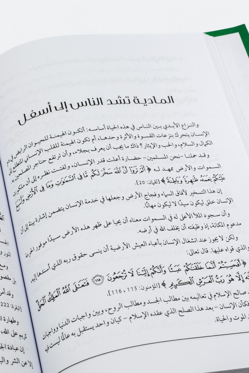 إن أولي النهي أجمعوا على أن الحضارة الحديثة تربط الإنسان بالأرض وتقطعه عن السماء، وتعلق قلبه بمآرب الدنيا وتذهله عن مطالب الآخرة وتعمل على سوق البشر بعيداً عن الله: ونحن المسلمين أغنى الناس بمواد البناء فى هذا المجال، وفى تراثنا ما يكفى ويشفى إذا أحسنا الإدراك والإفادة، وفى هذا الكتاب إحياء لجانب مهم من مواريثنا العلمية الثمينة، تتجهم له الحياة المعاصرة، ولكنها سوف تحرم بركات الأرض الأرض والسماء إذا خاصمته ومضت إلى غايتها الأرضية بعيدة عنه (ألا وهو التصوف أو الجانب العاطفى من الإسلام). فكيف تتحول التكاليف الصعبة إلى شئ سائغ حلو؟ وكيف السبيل إلى جعل القلب متعلقاً بربه، يملك الدنيا كى يسخرها لخدمته ويجمع المال والبنين ليكون قوة للحق؟ وكيف يتحول ذكر الله بالغدو والآصال إلى مسلك إيجابى فعال يجعل أصحابه رهباناً باليل فرساناً بالنهار؟ إن المؤلف فى هذا الكتاب خرج بالتصوف من جحره أو من صومعته ليكون طاقة محركة فى ميادين العمل والنشاط والإبداع.
