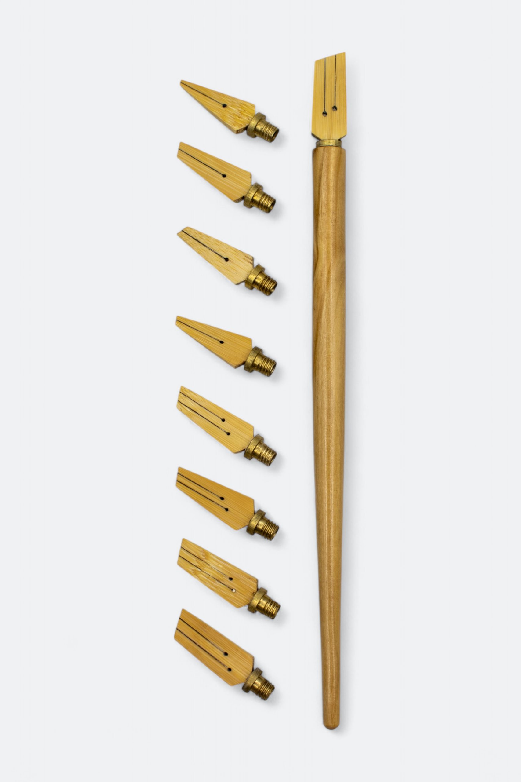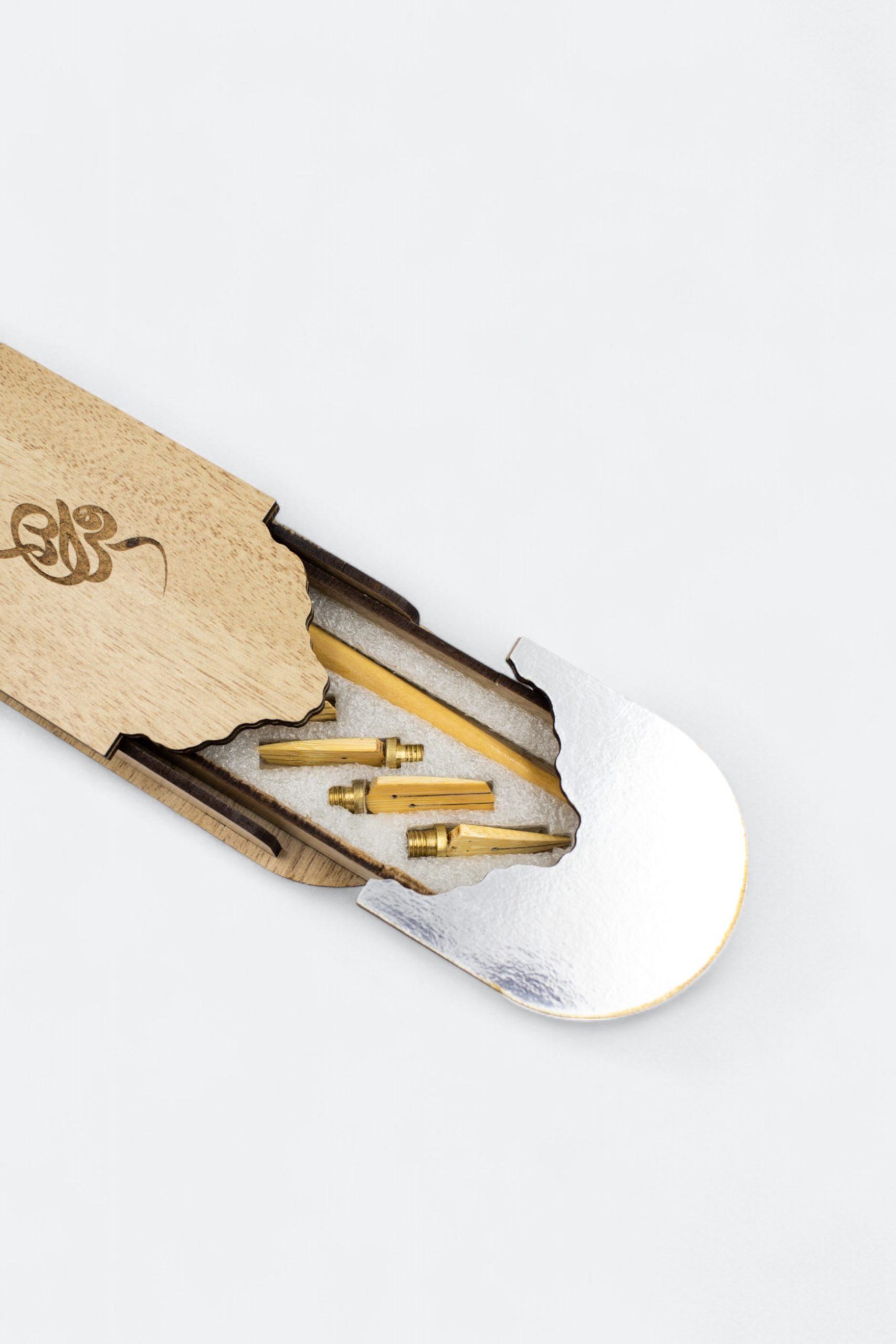 طقم أقلام طومار + 9 سنون هو مجموعة مخصصة للخط العربي، تتميز بأدوات عالية الجودة تناسب الخطاطين المحترفين والهواة على حد سواء.